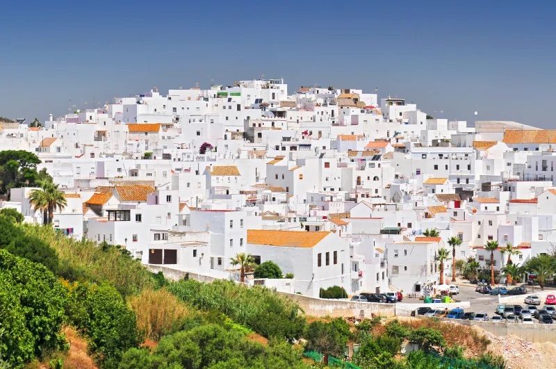 Vejer de la Frontera, en vakker hvit landsby som klamrer seg til en bakketopp med panoramautsikt over det andalusiske landskapet. Under en rolig spasertur gjennom de svale, brosteinsbelagte gatene opplever du både historisk atmosfære og stillhet, kombinert med vakre utsiktspunkter, små plazaer og tradisjonelle patioer.